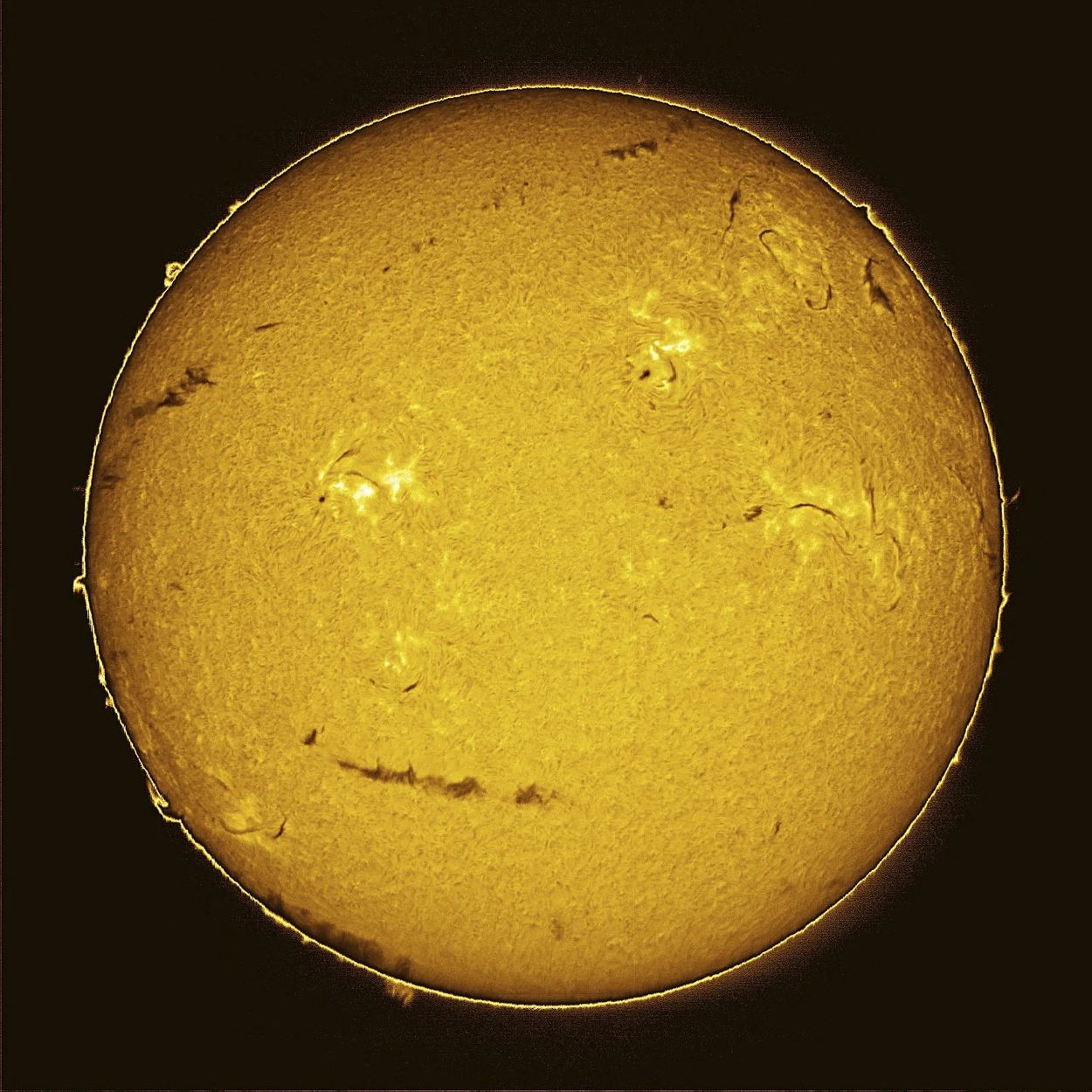 Scope: Hutech 80mm F/L=560mm achromat @ F7, ML Astro SHG700 spectrograph (Ha mode)
